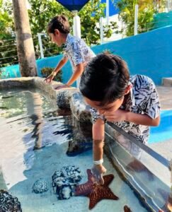 • Área de Contacto: Una de las zonas favoritas donde podrá tocar y aprender sobre estrellas de mar, erizos, pepinos de mar y rayas.
