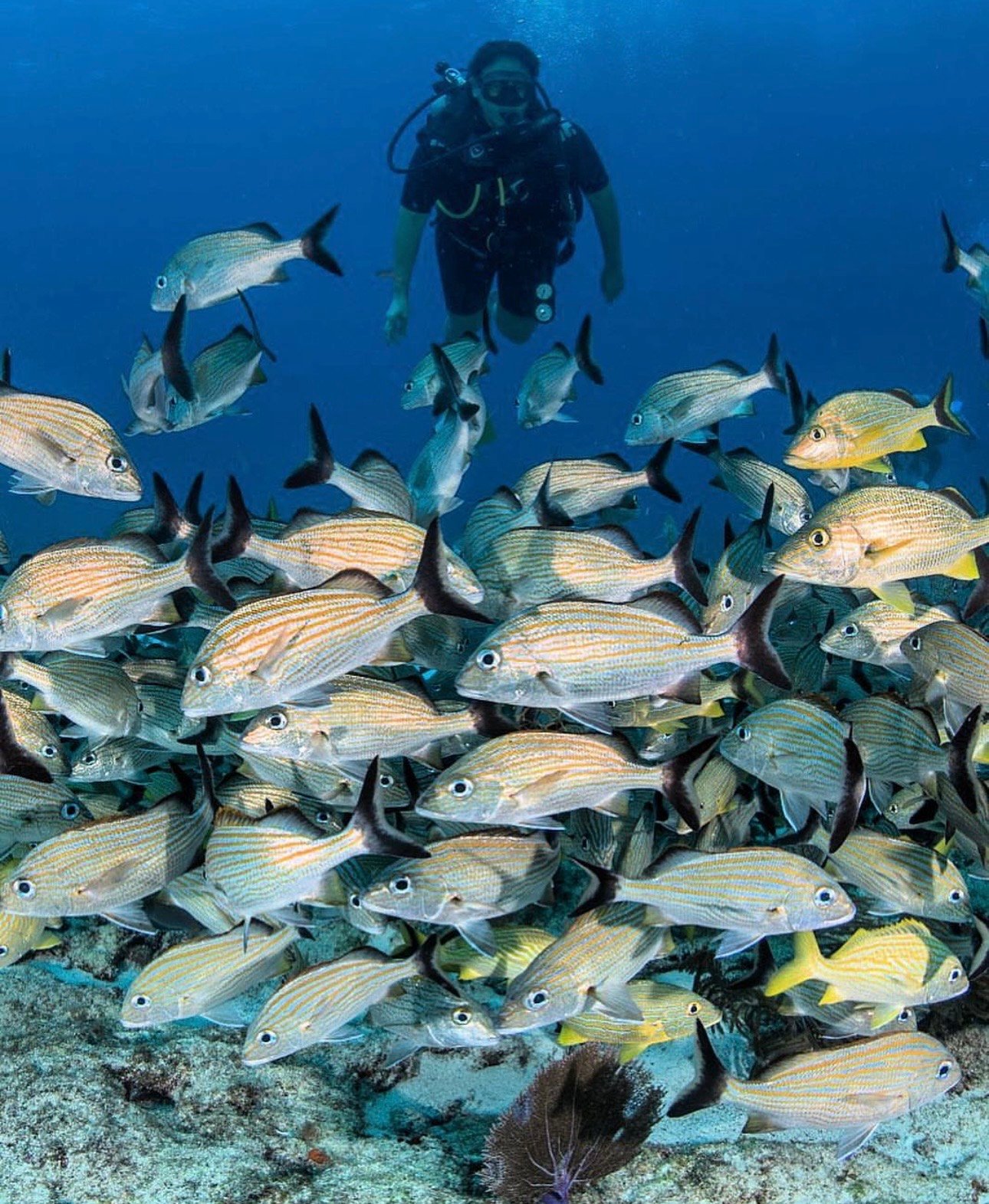 - Bucee en arrecifes naturales protegidos, como Manchones o Punta Nizuc, rodeado de una explosión de biodiversidad marina.