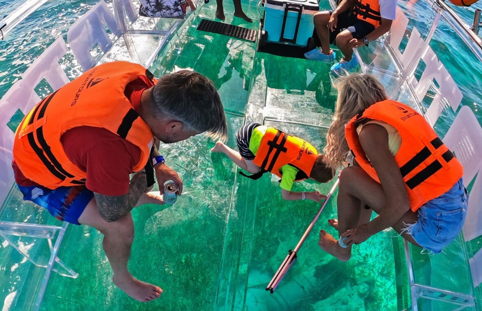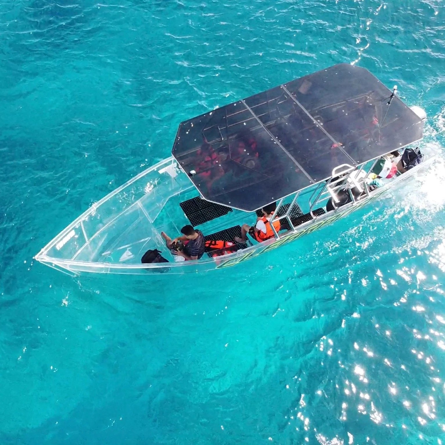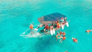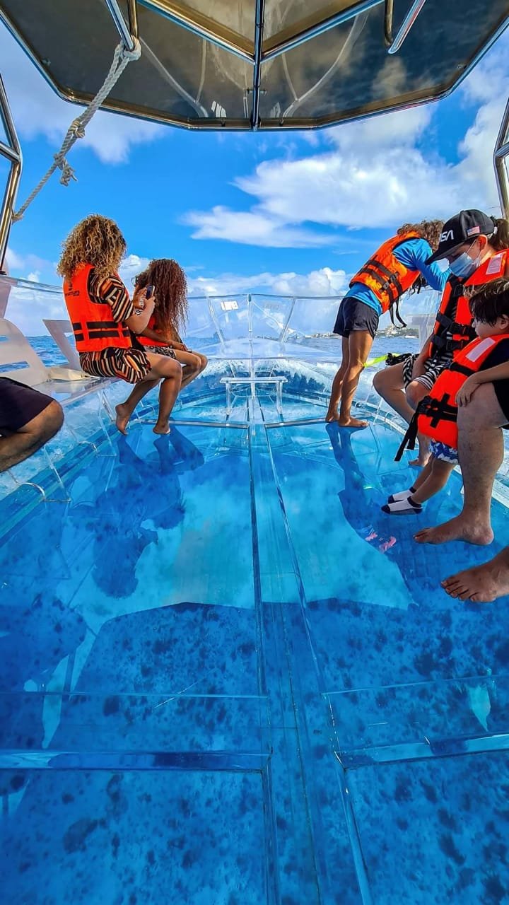 Explore la belleza del Caribe Mexicano desde una perspectiva única a bordo de una lancha 100% transparente. Esta innovadora embarcación le permite disfrutar de una visibilidad total hacia el fondo del mar mientras navega por las aguas cristalinas de Cancún. Es la experiencia perfecta para quienes desean admirar los arrecifes de coral, la vida marina y el océano sin necesidad de nadar o mojarse.