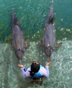 - Sustentabilidad: Queda prohibido el uso de bloqueadores solares, joyas o perfumes que puedan dañar la piel de los delfines o contaminar su agua.