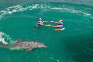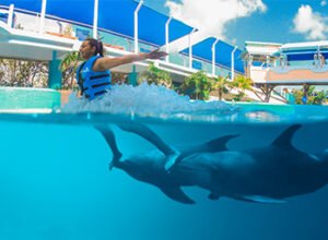 Haga realidad el sueño de nadar con una de las especies más inteligentes y carismáticas del océano: los delfines. Podrá disfrutar de un encuentro educativo y emocionante donde aprenderá sobre su biología, cuidados y conservación. Al reservar con antelación, asegura su lugar en programas que van desde interacciones tranquilas en plataformas hasta el famoso “Foot Push”, donde será impulsado por el agua por estos increíbles mamíferos. Es una actividad diseñada para generar una conexión profunda con la naturaleza, ideal para todas las edades y niveles de natación.