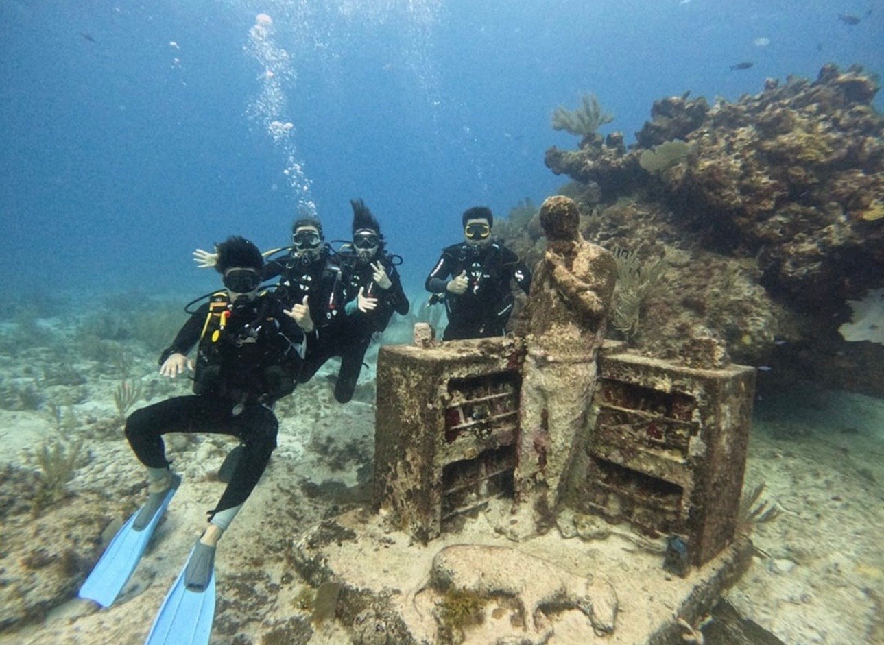 • Galerías del MUSA: Admire obras icónicas como “La Evolución Silenciosa” y “El Coleccionista de Sueños”, sumergidas a profundidades de 3 a 10 metros.