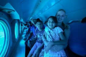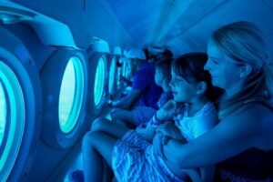 La aventura comienza con un breve trayecto en barco hacia la zona de inmersión. Una vez en el submarino, sentirá la suave transición mientras la nave comienza su descenso. A medida que baja, los colores cambian y la vida marina se vuelve más densa. La cabina es espaciosa y cada pasajero tiene su propia ventana para observar el paisaje. Es una experiencia silenciosa, segura y visualmente impactante que permite ver formaciones de coral y especies de profundidad que rara vez se ven cerca de la superficie.